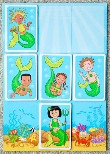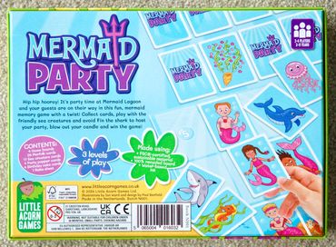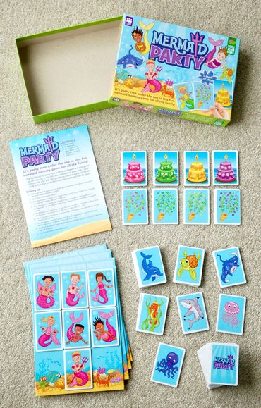 Mermaid Party is a beautiful children’s card-collecting memory game where the party hosts are trying to fill their lagoon with guests to get the party started! However, with their sea creature friends never far away and always wanting to play, there's action at every turn!