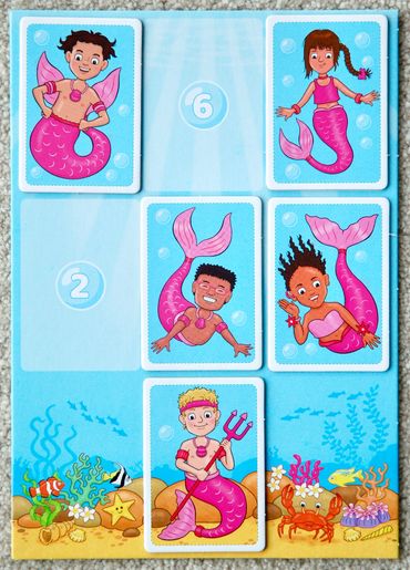 If the mermaid/merboy you pick up is in your party colour, place the card on your board.