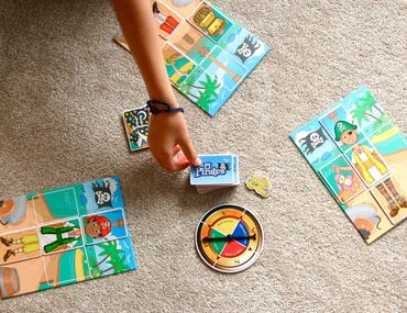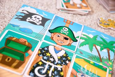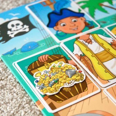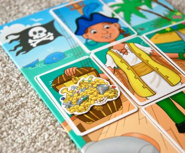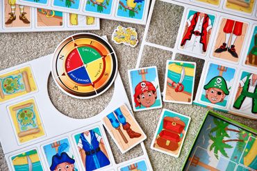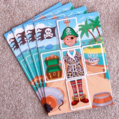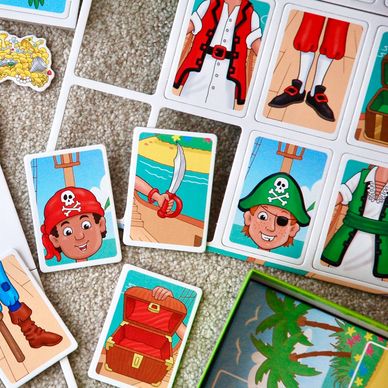 Strategy: Lots of strategies to hold back other players from building their pirates before you complete yours will become apparent as you play! Will you try to trap someone's much-needed card within the discard pile? How about using Pesky Polly Parrot to take away someone's green treasure chest even though you're collecting the blue outfit?