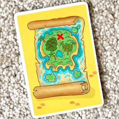 As seen on the Treasure Map card, the treasure is buried on the north of the island, so the first player to land the spinner on Red North [N] finds the treasure, places the treasure piece on their treasure chest and wins the game!